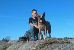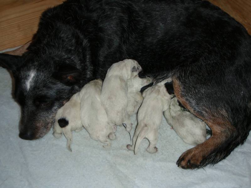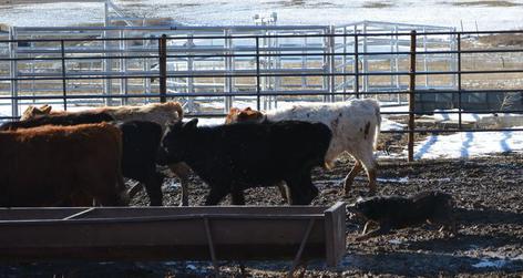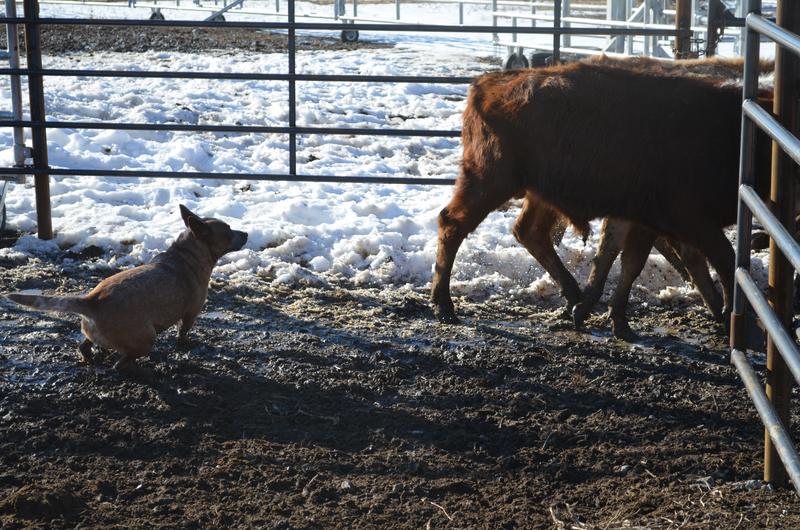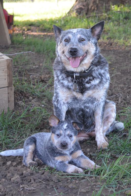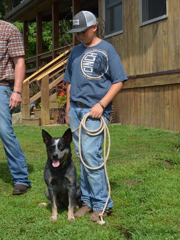 Cap is one of Pistol's & Miah's pups from our first litter. Cap is the calm one, he loves to chase cows and has all the right moves but unlike Pistol he is very easy goin'. He would rather lay around and watch mom all day! He has been my babysitter for many puppies and he is just the sweetest most careful thing for his size and strength! He is a taller lankier built boy but this has proved advantageous for keeping up with us during our long cattle drives on horseback! Cap is now retired from breeding and working but he still is by momma's side everyday!