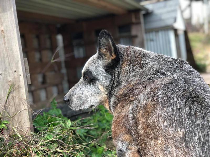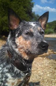 Forest was our ACD foster dog from Pennsylvania. He came to live with us May 2013. He ended up staying forever. He was born with scoliosis and had a cart but he loved to play freely on the farm! He loved the other ACDs and was the most loving happy boy you would ever meet!