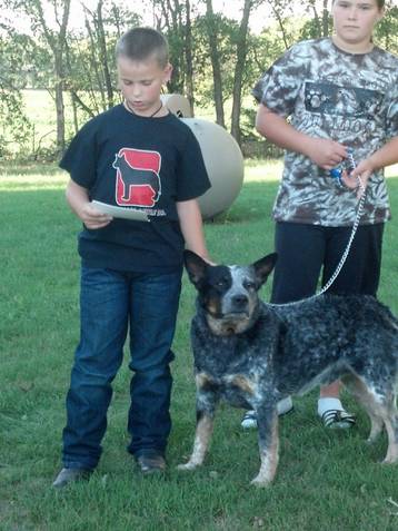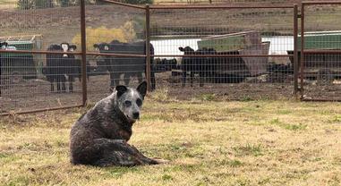 Miah was our first amazing blue female. She had been retired from breeding but stayed here on the farm as our beloved companion and helper. Miah produced many amazing puppies. She was always calm, quiet and level-headed. She worked off of Ethan in the pasture and sorting in the barn lot with ease. She taught the others what was expected from them and kept them all in line! We are thankful for 11 years with her and all that she taught us about this amazing breed.